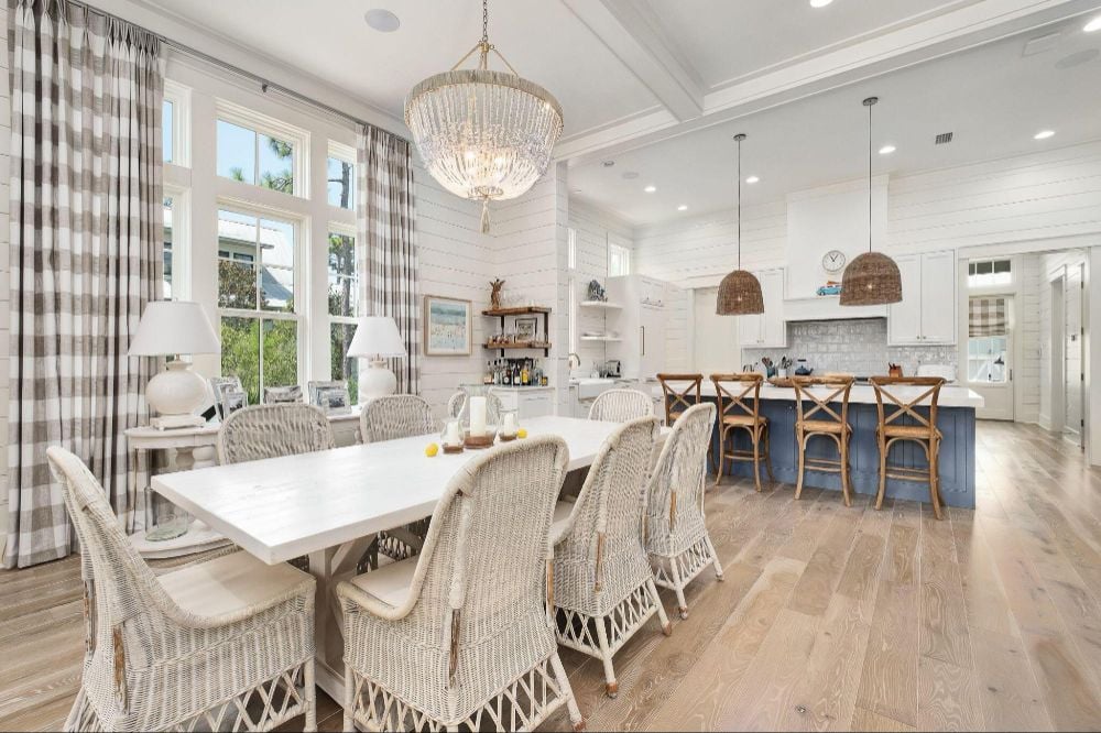 Modern farmhouse design remains popular across Florida, but in Watercolor, it's often softened with coastal elements. This style works especially well in newer builds with open-concept layouts and large porches.